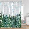 Duschvorhänge mit nebligen Wäldern, verschneite Kiefern, grüne Wälder, Naturlandschaft, minimalistisches Badezimmerdekor, moderner Badevorhang aus Polyester