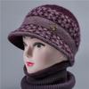 Winter hat women's fleece thickened thermal ear protection hat big brim old lady knitted wool hat