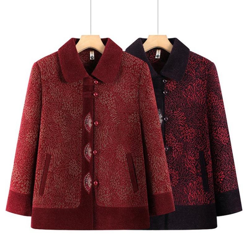 Winter coat medium and old women's clothing embroidery thickened 0 elderly clothes velvet warm outer wear