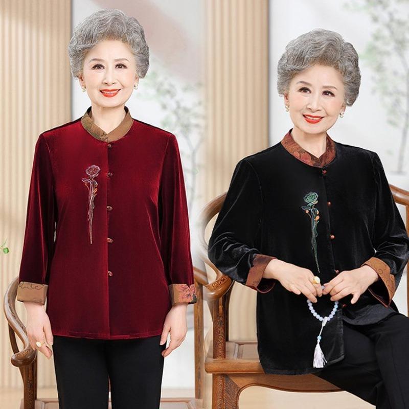 Festliche langärmlige neue Damenbekleidung und Oberteile aus goldenem Samt