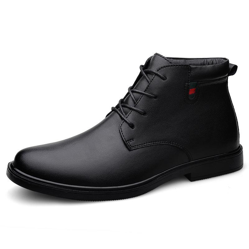 Herren Herbst- und Winter-High-Top-Lederschuhe aus Rindsleder mit Schnürung, Business-Gentleman, lässige Lederstiefel, formelle Samt-Thermo-Kurzstiefel für Herren