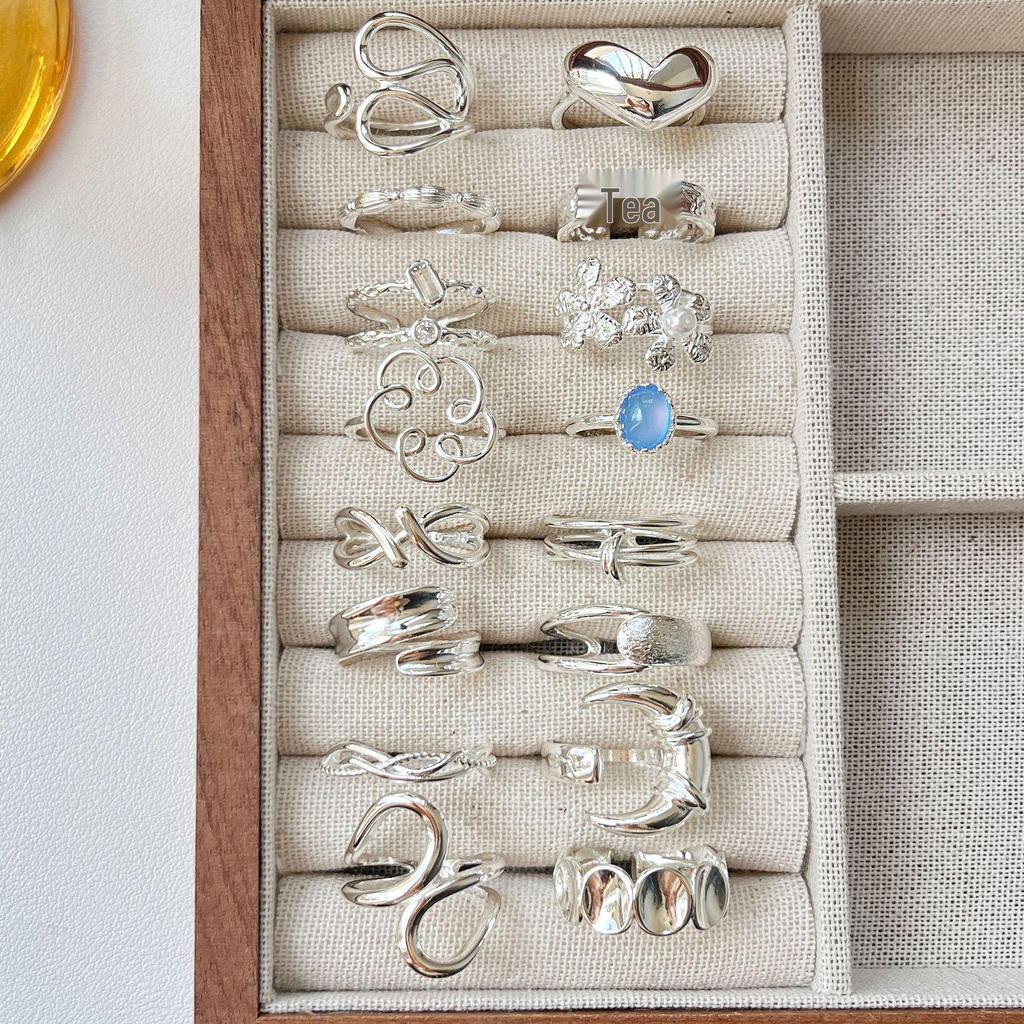 Koreanischer 925 Sterlingsilber Geometrischer Ring: Nicht verblassend, vielseitig, verstellbar, glänzendes Finish für Frauen.