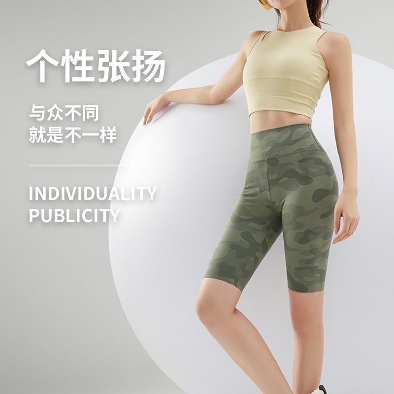 Camouflage five-point ice shark pants summer wear sports yoga pants women's hip lift belly women's leggings