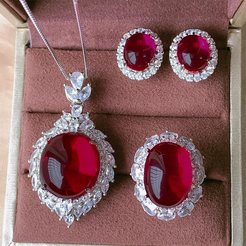 Schmuck Simulation Taubenblutrot Korund Schlicht Licht Luxus Set Anhänger 18 * 20 Ring 13 * 18