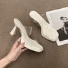 2025 Sommer neue vielseitige dicke Ferse eckiger Kopf transparentes Wort mit Sandalen Plateau offene Zehen Sandalen hohe Absätze Damen Oberbekleidung