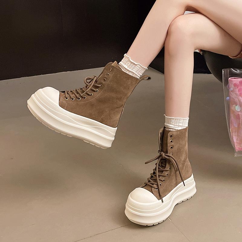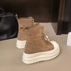 Canvas-High-Tops mit dicker Sohle für Damen 2025 Herbst und Winter Retro Europäischer und Amerikanischer Stil Großer Zeh Schnürschuhe Matt Workwear Ritterstiefel f
