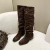 Stiefel aus Veloursleder Damen Ritterstiefel Retro Wildleder Dicke Ferse Quadratische Spitze 2025 neue geraffte kniehohe Stiefel Kinder