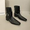 2025 Winter Retro Einfarbig Vielseitige Gürtelschnalle Quadratische Spitze Dicke Ferse Kurze Stiefel Damenmode Vielseitige Martin-Stiefel Dünne Stiefel