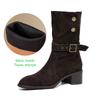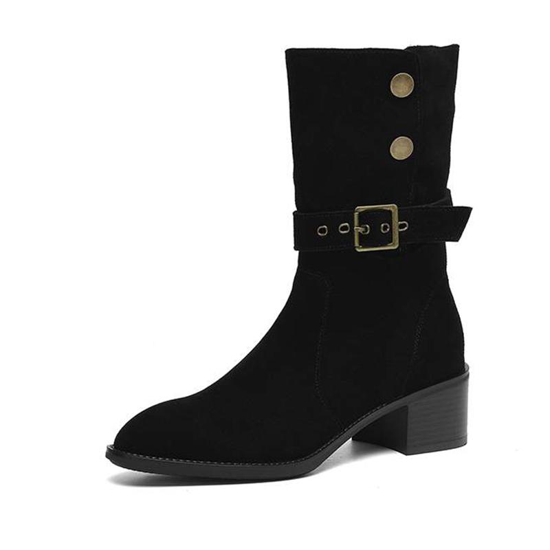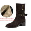 Krazing Pot Cow Suede Nubuck Winter Round Toe Modern Boots Med Heels Slip on Metal Rivets Women Mid-calf Boots