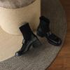 Neue runde Lederkopf-Martin-Stiefel einfarbig Reißverschluss hinten große Größe Lederstiefel Koreanische Version bequemer Blockabsatz weiche Sohle mittel b
