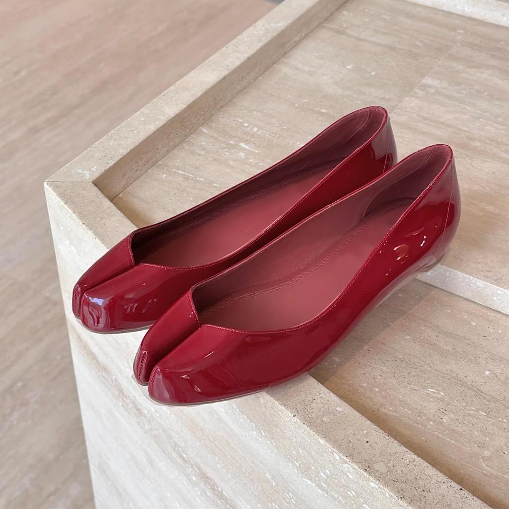 Lammfellversion~ Französisch rote Leder Zehenschuhe Damen Frühling neu weichsohlige Mary Jane Einzelschuhe Ballerinas