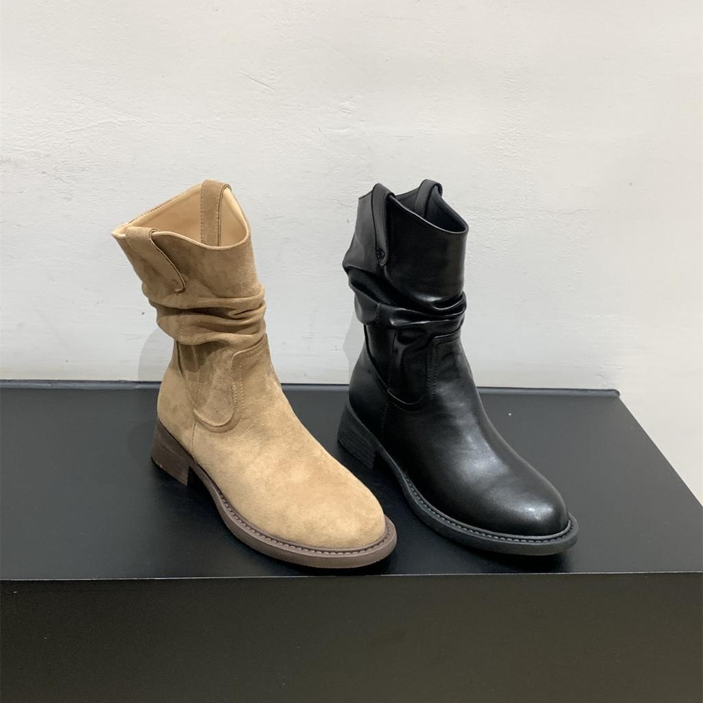 Dicksohlige V-Ausschnitt dünne mittelhohe Stiefel Damenschuhe 2025 Frühling und Herbst Einzelstiefel Western Cowboy Pile kurze Stiefel Martin Stiefel
