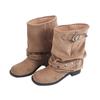 Rindslederversion~ Retro-Leder Schwarz Hosenstiefel Nieten Kurzstiefel Damen Westernstiefel Plissierte Stiefel mit Blockabsatz Lokomotivstiefel