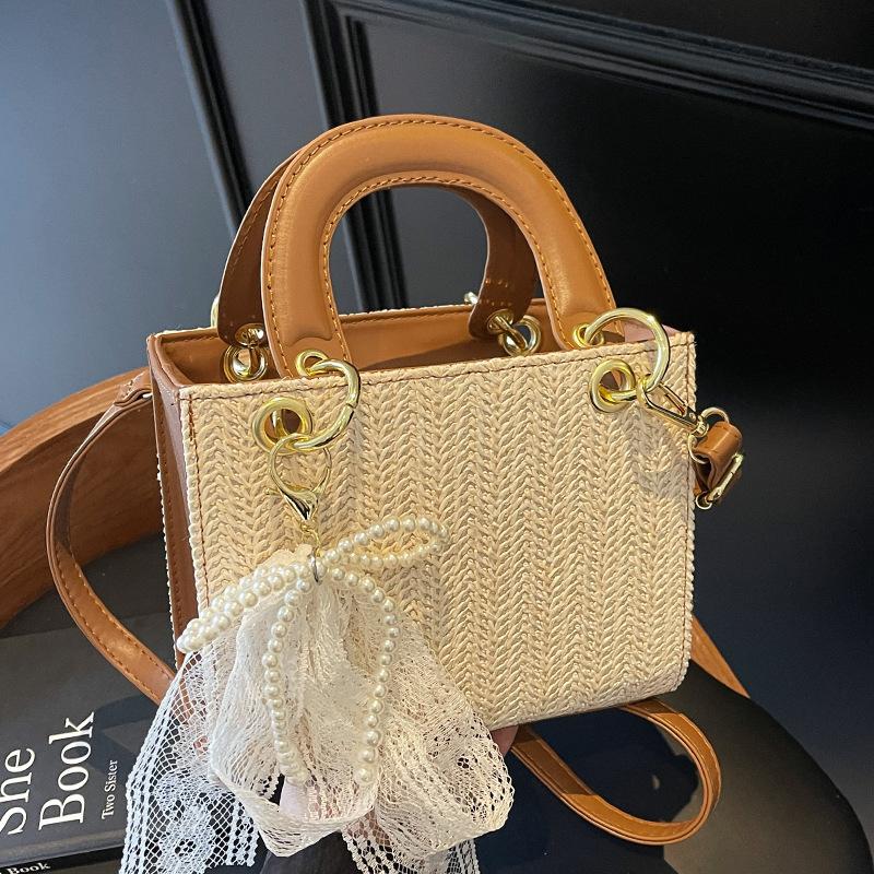 2025 new niche design fashion high sense straw woven portable Princess Diana bag foreign style versatile contrasting color messenger women's bag
