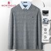 MONTAGUT Herren Strickpullover im Faux-Zweiteiler-Look mit Hemdkragen