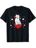 Schwarze Katze beißt Rose Herzen Valentinstag Tier Haustier Geschenk T-Shirt