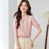 Srcr Women's Jacquard Knit Mulberry Silk Blend Short Sleeve Top