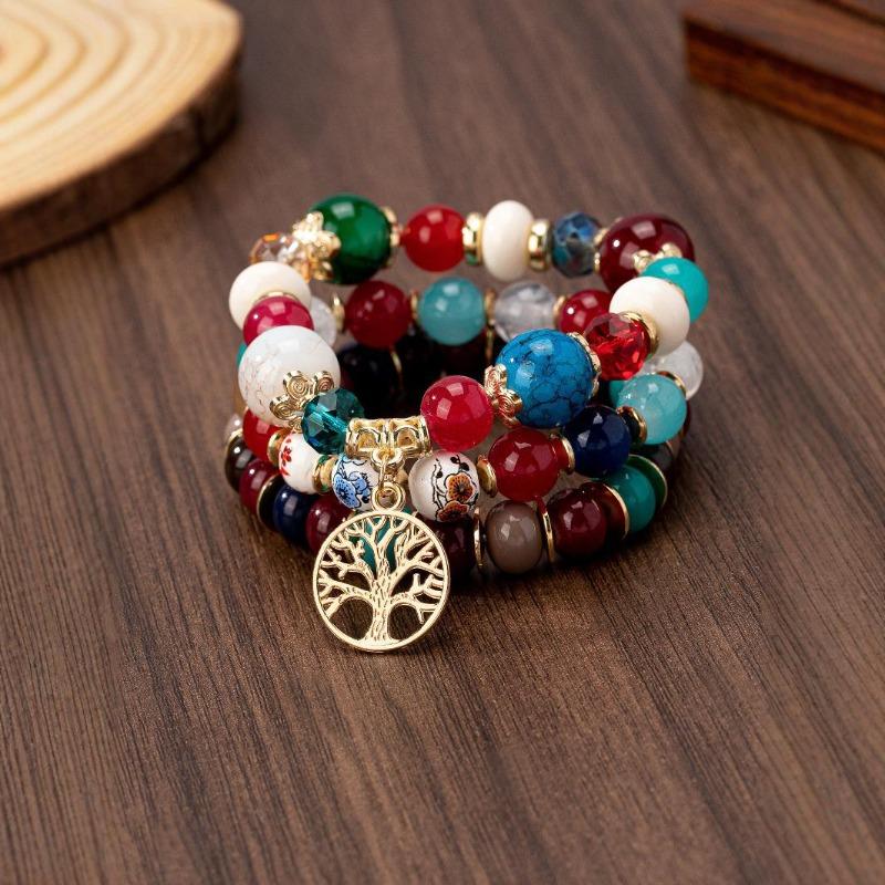 Hollow Tree of Life Bracelet Blue and white porcelain pattern glass bead pendant bracelet
