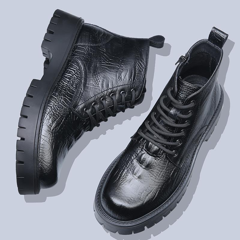Martin Stiefel Herren Samt High-Top Britischer Wind Lokomotivschuhe Werkzeuglederstiefel Winter Erhöhend Dicksohlige Mittelhohe Baumwollstiefel