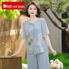 Elegantes florales Sommer-Zweiteiler-Set im chinesischen Stil für Frauen mittleren Alters