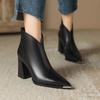 Klobiger Absatz spitze kurze Stiefel Damen 2025 Herbst und Winter neu vielseitig stoßfest Metall Eisenspitze weiches Leder hoher Absatz dünne Modestiefel