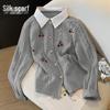 Damen 2025 Herbst Fake Zweiteiler Patchwork Revers Pullover Top