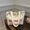Striped canvas bag women's 2025 summer new trendy Korean college style letter tote bag casual large-capacity bag