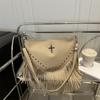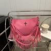 2505 Frühling und Sommer Saison neue Mode Nieten weiches Leder trendige lässige Nieten Fransen Tasche einzelne Schulter schräge Umhängetasche Damentasche