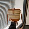2025 new literary and artistic splicing contrasting color straw woven bag women's high-end texture fashion handbag foreign style messenger