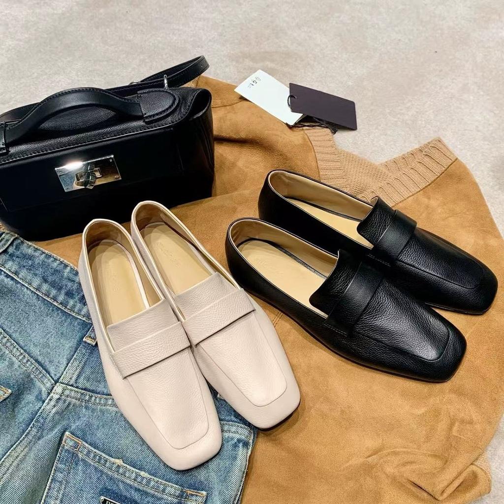 Britischer Stil quadratischer Kopf ein Pedal Pendler Loafer Lederschuhe Damen 2025 schlicht und bequem vielseitig flacher Absatz Einzelne Schuhe Freizeitschuhe