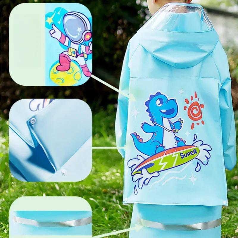 Wasserdichter Kinderregenmantel (PVC) - Niedliches Dinosaurier- & Einhorn-Design Regenponcho Jacke mit Rucksack-Fleck Ideale Studenten-Regenbekleidung