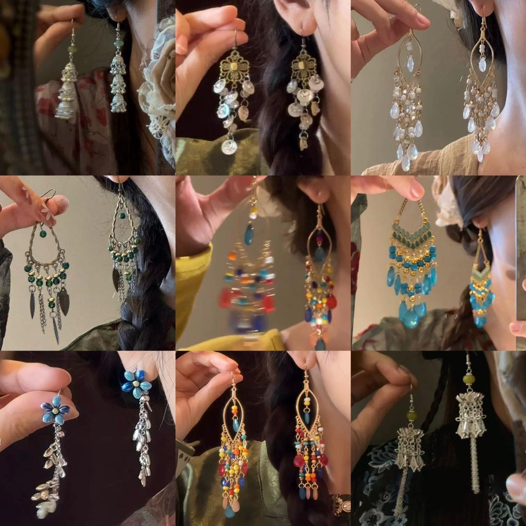 Ohrringe mit Fransen im Ethno-Stil, Urlaubsreisefotografie, Atmosphäre, Ohrhaken, Nische, vielseitige Ohrringe