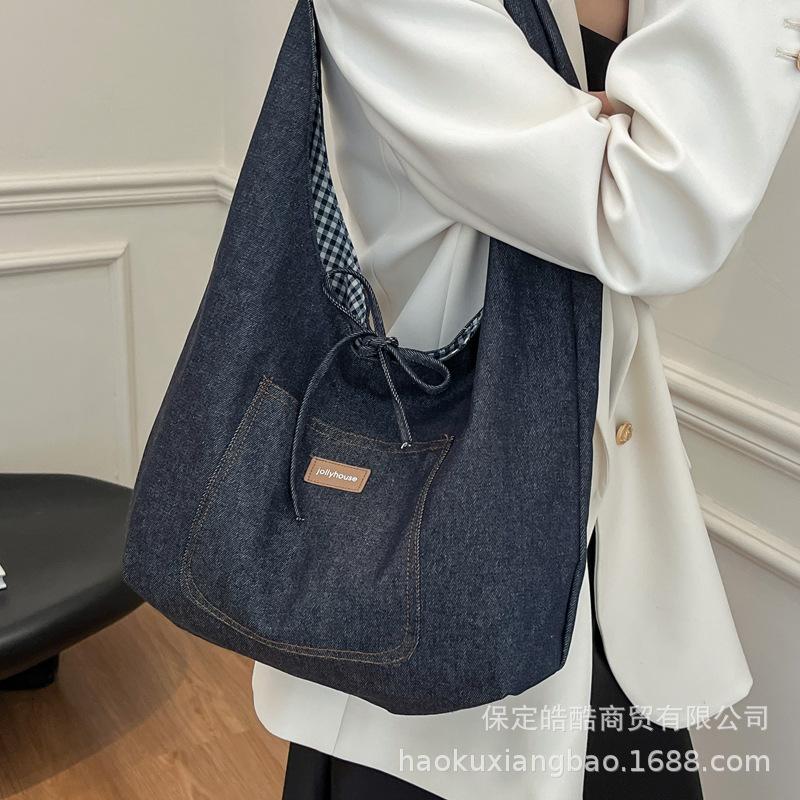 Damentasche aus Denim mit großem Fassungsvermögen 2025 neue Freizeit-Schultertasche für Frühling und Sommer Stofftasche Klasse Pendler-Tragetasche