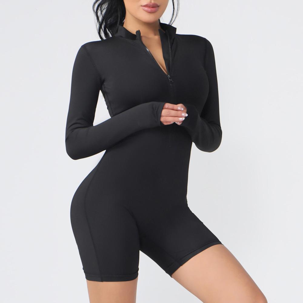 Europäisch-Amerikanischer Langarm-Reißverschluss Yoga-Jumpsuit - Sexy Tanz- & Fitness-Bodysuit für Damen