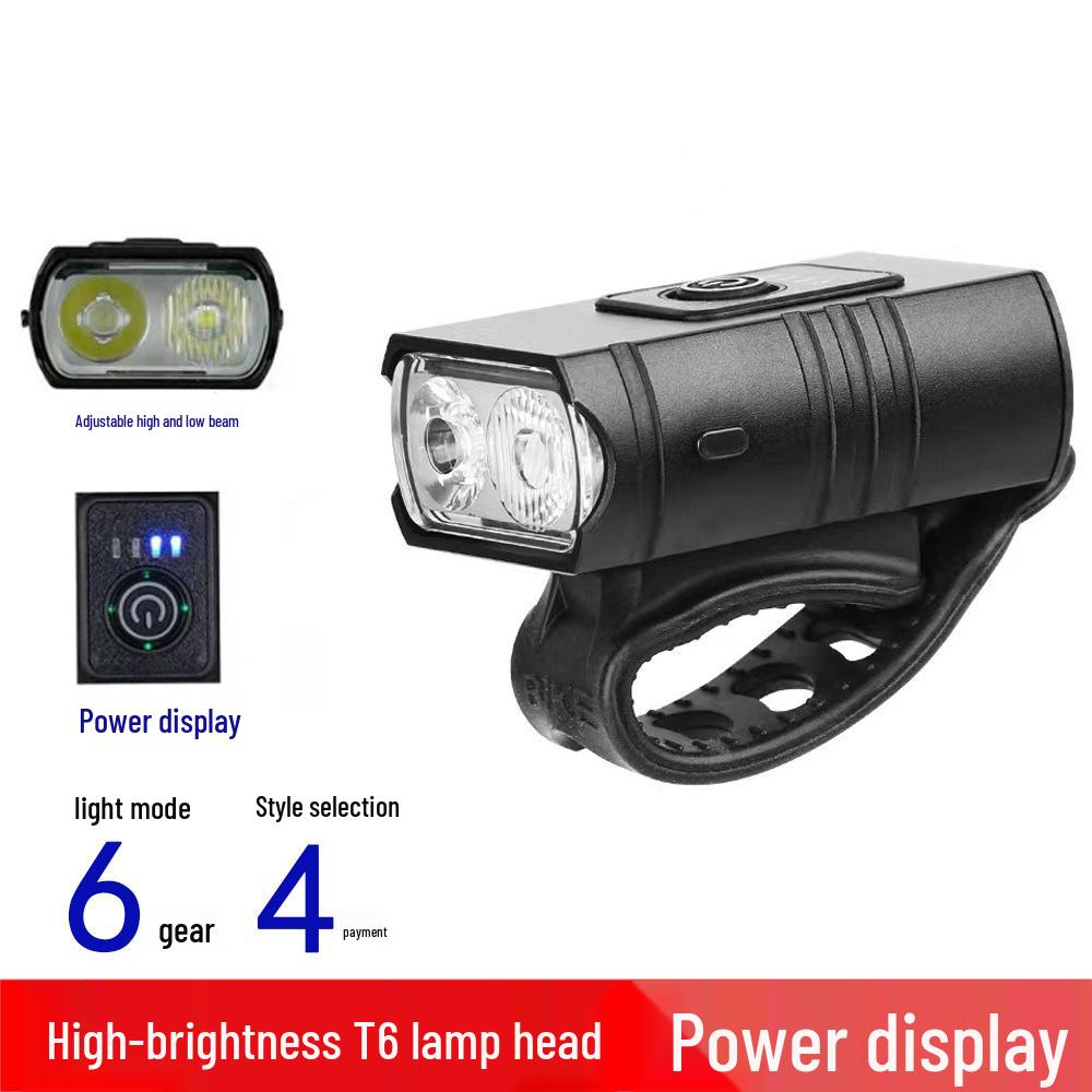 2*T6 USB Wiederaufladbares Aluminium Fahrradvorderlicht mit Leistungsanzeige für Nachtfahrten