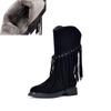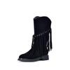 Johnature Retro Echtleder Mid-Calf Stiefel Modische Vielseitige Mittel Absatz Damen Quastenstiefel
