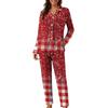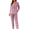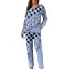 Damen Casual Mode Karomuster Patchwork Druck Langarm Hose Loungewear Set