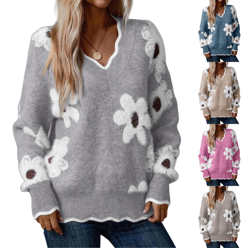Damenmode Lässig Spitze V-Ausschnitt -Nerz Pullover Langarm Lockerer Pullover