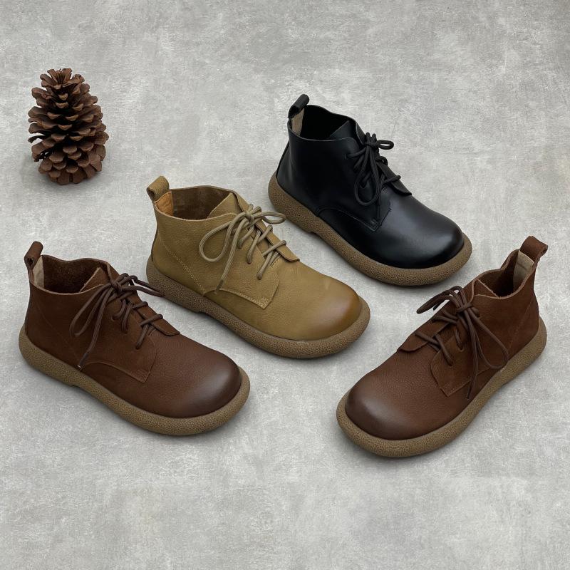 Kurzstiefel-Stil, Rundzehen, Flachabsatz, Schnürschuhe mit weicher Sohle für Damen, High-Top-Schuhe