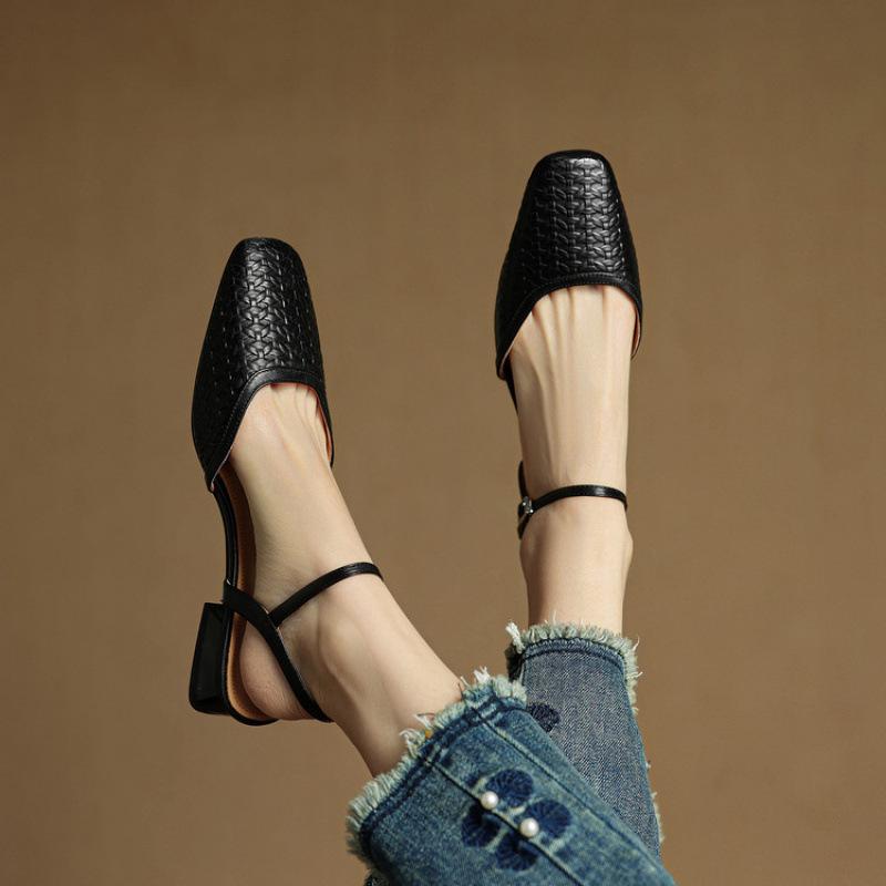 Bequeme Tasche Kopf Rücken leer Sandalen Sommer flache Sandalen gewaschenes Rindsleder einfarbig Rindsehne weiche Sohle große Größe Freizeitsandalen