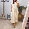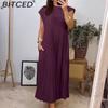 BITCED Herbst Damen Elegantes Mode O-Ausschnitt Ärmelloses Plissee Maxikleid