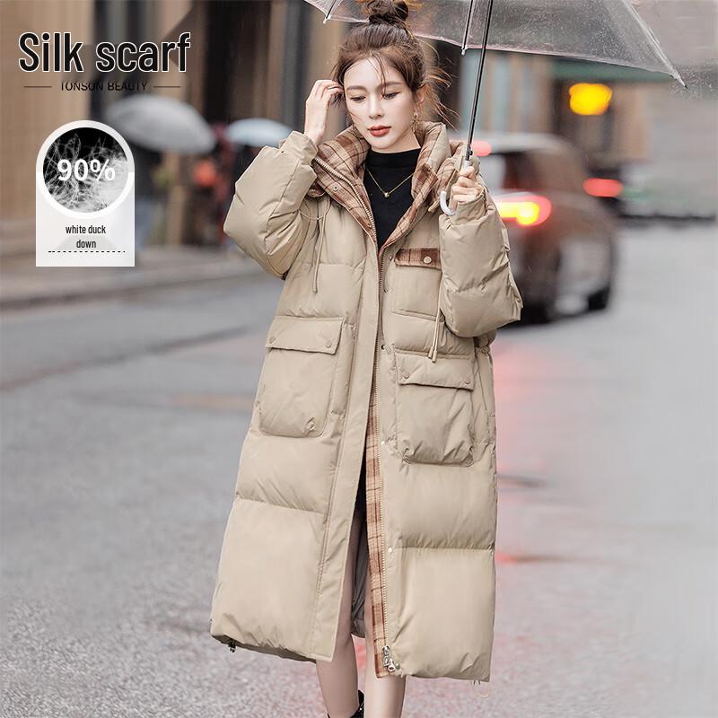 Si Baishe Women's Mid-Length Patchwork Hooded Down Jacket