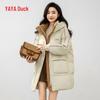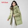 Damen Mittellange Kapuzen Daunenjacke mit Farbblock