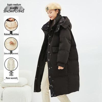 Daunenjacke für den Winter im koreanischen Stil für Damen mit Kapuze und lockerem, langem, warmem Mantel