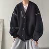 Lässige Strickjacke mit lockerem Strickmuster, Wollpullover für Herren, langärmlig, Herbst- und Wintermode, modischer Zierpullover mit leuchtenden Linien