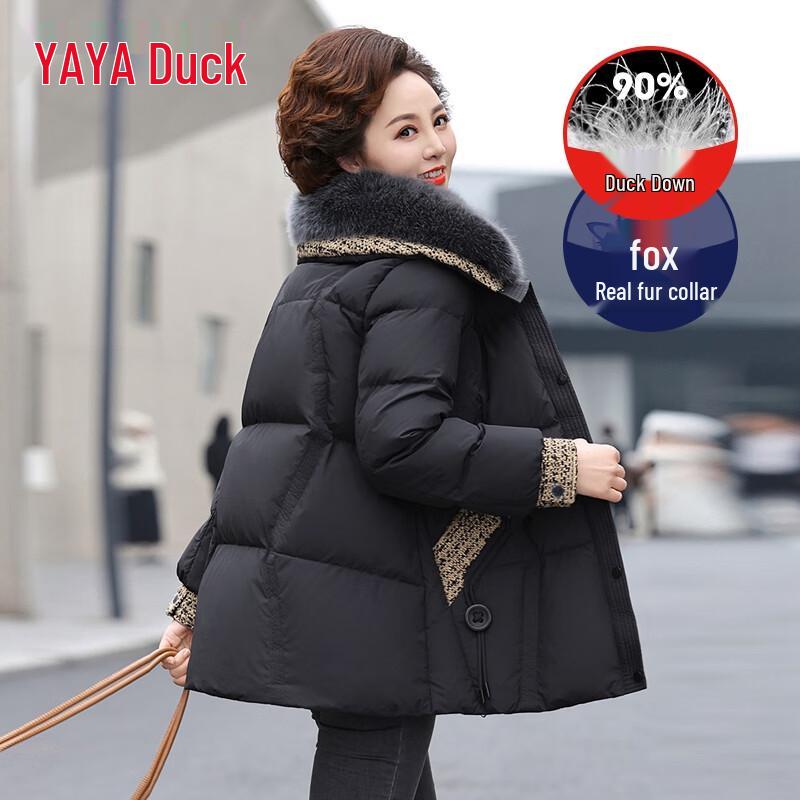 YAYA Women's Mid-Length Winter Down Jacket with Fur Collar