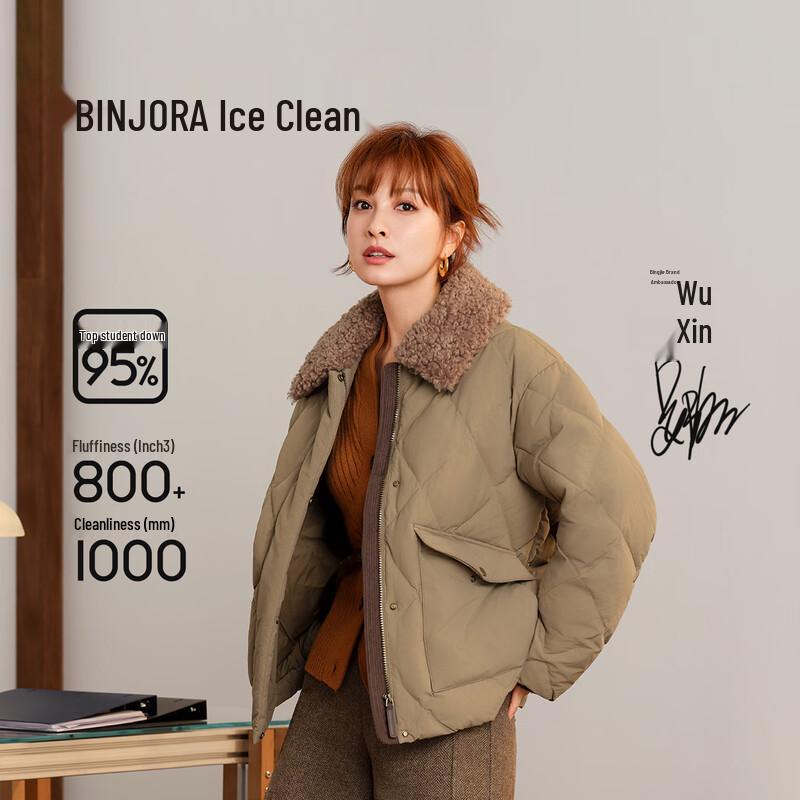 BINJORA Women's Short 95% Duck Down Parka with Detachable Fur Collar
