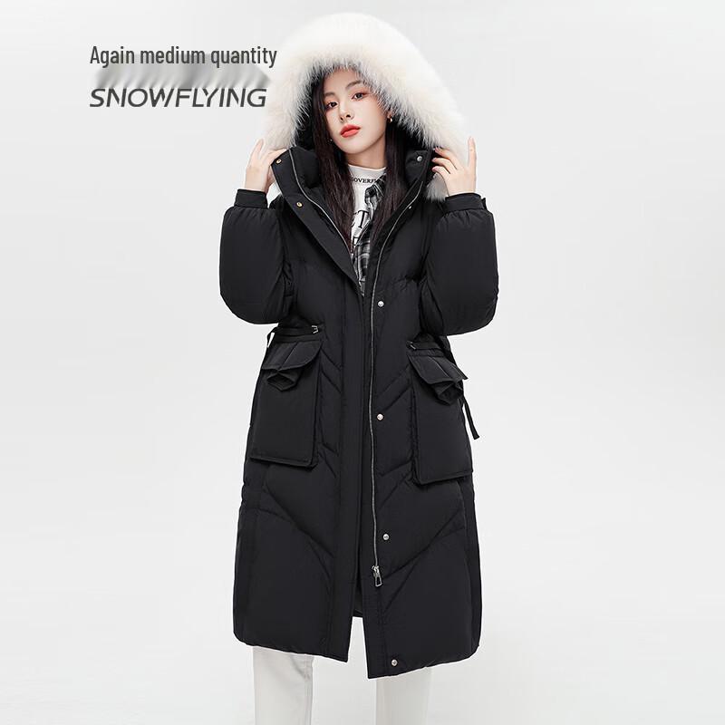 SNOWFLYING Women's Fox Fur Collar Mid-length Down Jacket