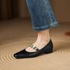 Französische Retro Mary Jane Schuhe mit quadratischer Spitze, vielseitige Damen Einzelschuhe, Frühling und Sommer neu, leichte Öffnung, niedriger Absatz, einfarbige Lederschuhe zum Pendeln