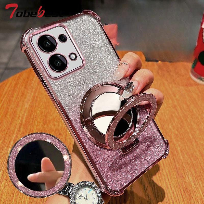 Glitzer Stoßfestes Silikonhülle Für Xiaomi Redmi 15C 15 4G 5G Spiegel Magnetischer Halter Ständer Weiche Hülle